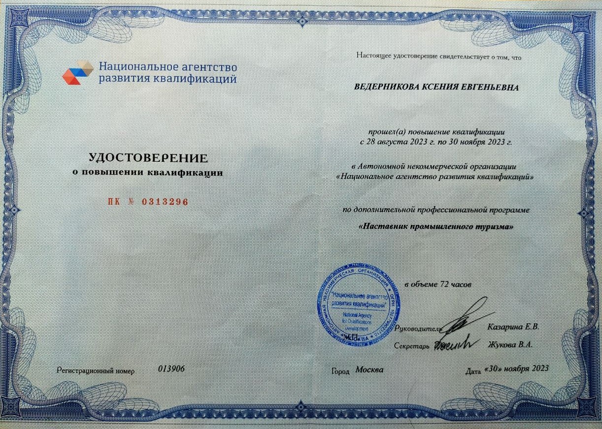 Член рабочей группы по детскому, молодежному и семейному туризму при комитете Государственной думы РФ по туризму и туристической инфраструктуре